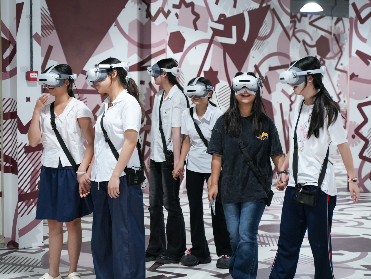 抵达目的地后,工作人员首先围绕活动主题与党史背景进行讲解,系统回顾中国共产党光辉历程,为后续沉浸式体验奠定思想基础。随后,师生参与了AR沉浸式体验。依托先进技术,师生们仿佛穿梭于历史长河,身临其境地感受从党的诞生、艰苦卓绝的革命斗争到新时代砥砺奋进的伟大历程。沉浸式互动体验使教师及青年学子深切感悟红色精神,使命感油然而生。
