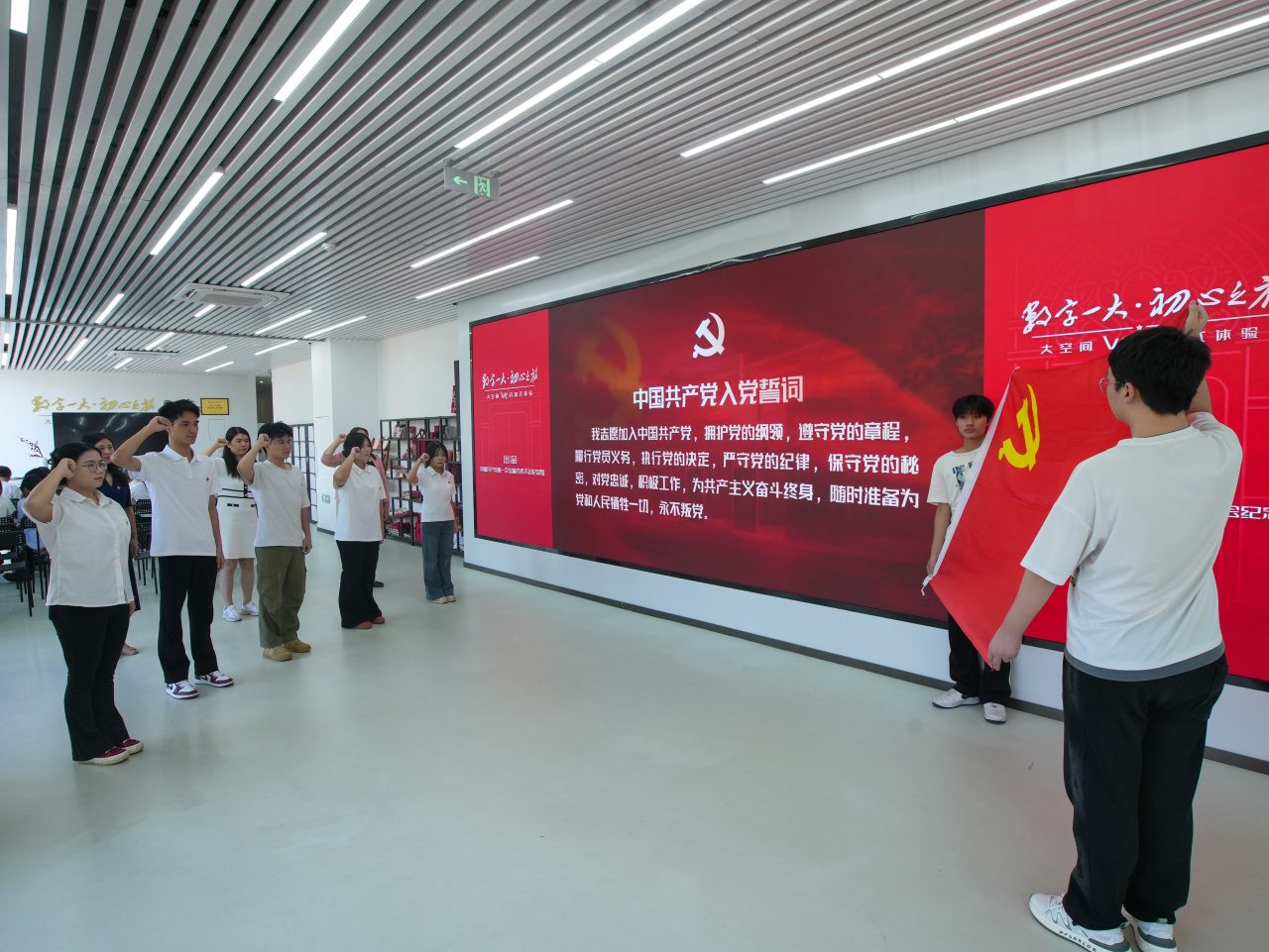 体验环节结束后,建筑与规划学院的团员、预备党员及入党积极分子整齐列队。全体团员面向团旗肃立,重温入团誓词,以铿锵的誓言庄严承诺坚守理想、勇于担当;党员则面向党旗,高举右拳,重温入党誓词,表达对党的无限忠诚和为党的事业奋斗终身的坚定决心。这庄严的宣誓仪式,深刻展现了学院青年学子传承红色基因、矢志践行初心使命的坚定信念。