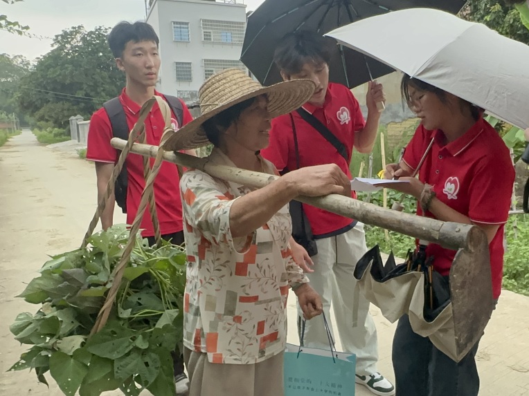 这种“方言+政策”的创新形式,不仅让国家资助的温暖精准触达每一个有需要的家庭,更拉近了与群众的心理距离,让政策宣传从“单向灌输”变成“双向互动”。实践队用贴近生活的表达,让村民们真切感受到国家政策的关怀,也为后续政策落地筑牢了群众基础,真正实现“政策入乡,暖意入心”。